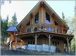 "We live on a Cook Inlet beach front property on the Knik Arm. From our doorstep we have ocean views, mountain views, and glacier views, no matter which way you turn you are looking at a post card scene of Alaska. When we were trying to decide what to build here, we knew we had to build something that would be special, unique and complement our grand natural setting. We had seen a Log Weaver home in the Anchorage area that we thought would work on our property. We contacted Bill and found him very helpful and easy to work with and soon after we made arrangements for Log Weavers to build our house. The house is a perfect fit for this property. The views here are world class and so is the house. Thanks Bill."